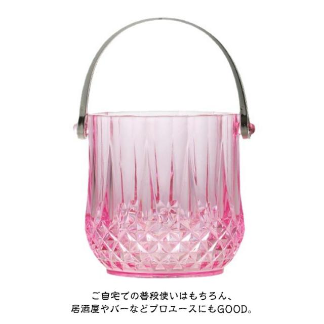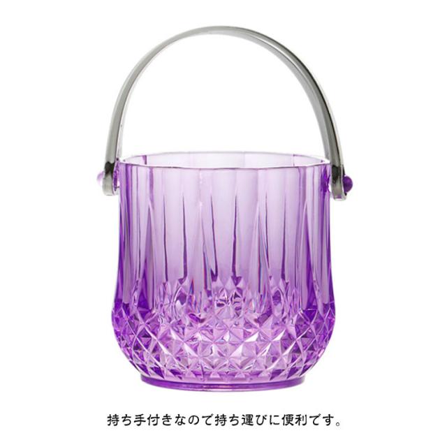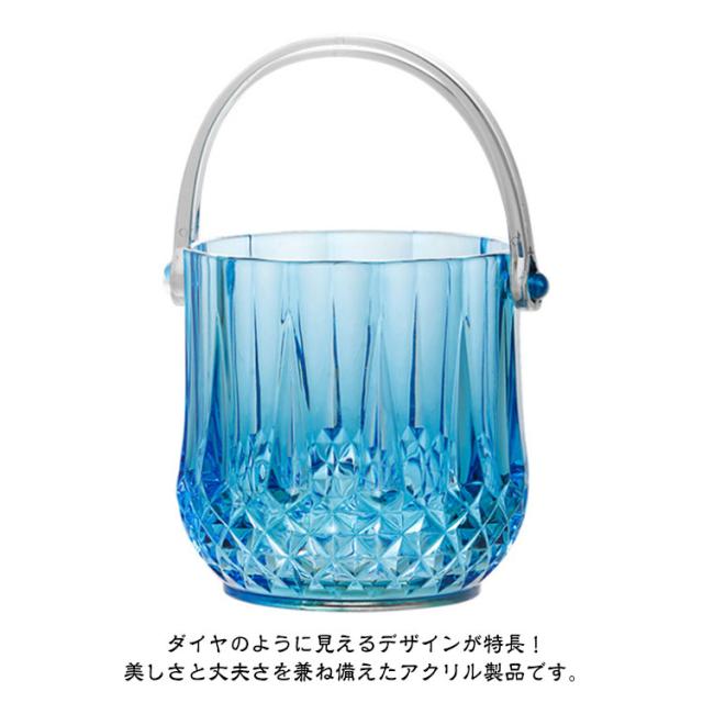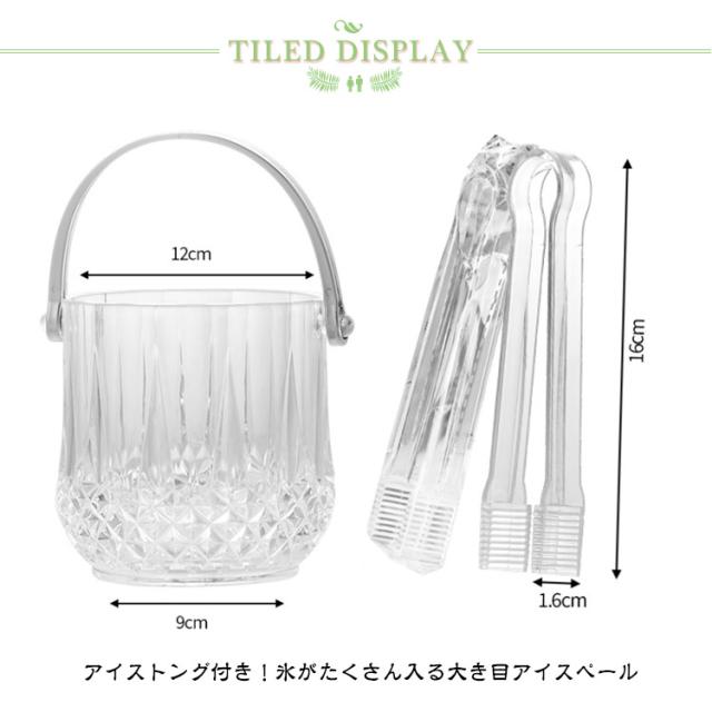 | 【大容量アイスペール】【アイストング付き】 アイストング付き!氷がたくさん入る大き目アイスペール ダイヤのように見えるデザインが特長!美しさと丈夫さを兼ね備えたアクリル製品です。 持ち手付きなので持ち運びに便利です。 毎日の晩酌に・・・普段使いに最適のシンプルで丈夫な氷入れ。 ご自宅での普段使いはもちろん、居酒屋やバーなどプロユースにもGOOD。 | |