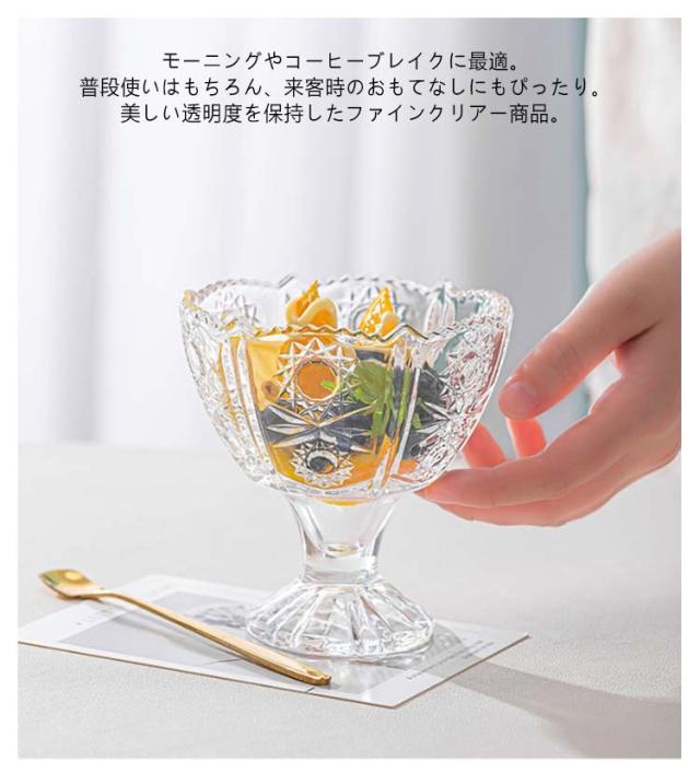 【6個セット】 デザートカップ ファンテン ガラス パフェグラス アイスカップ デザートグラス グラス 強化ガラス 食洗機対応 食器 エンボスグラス カップ 脚付き 小鉢 サンデー パフェ おしゃれ かわいい カフェ 喫茶店 業務用 来客用