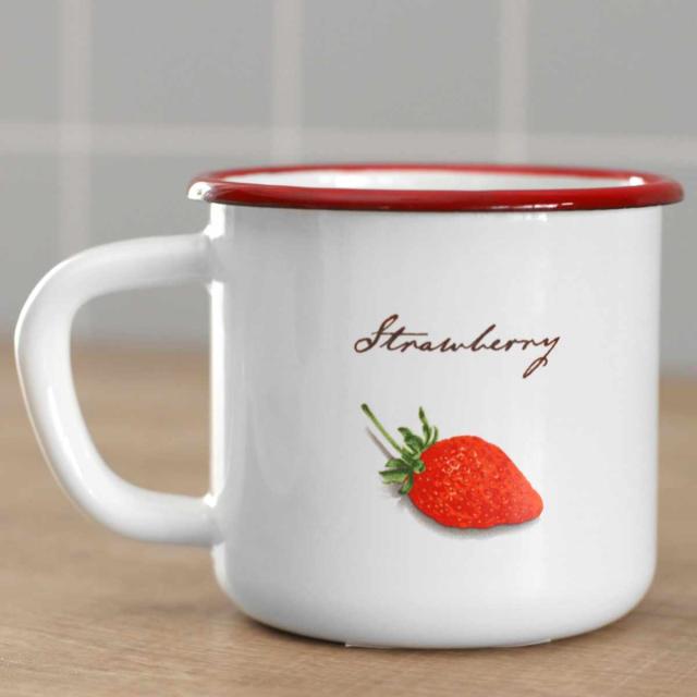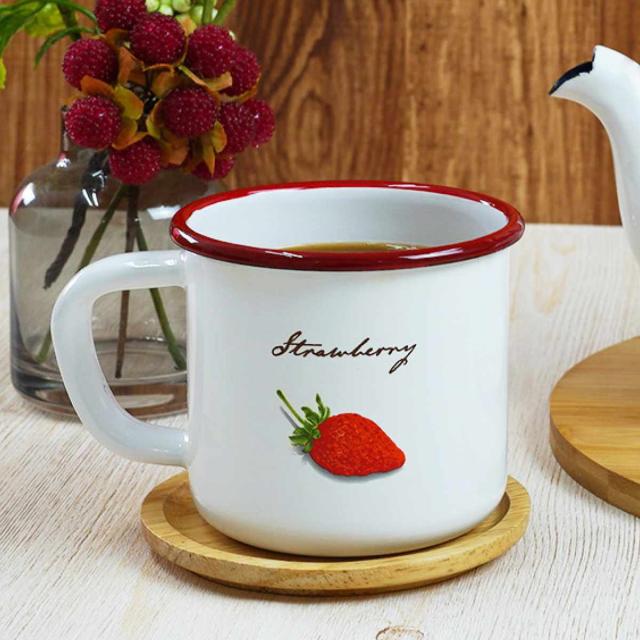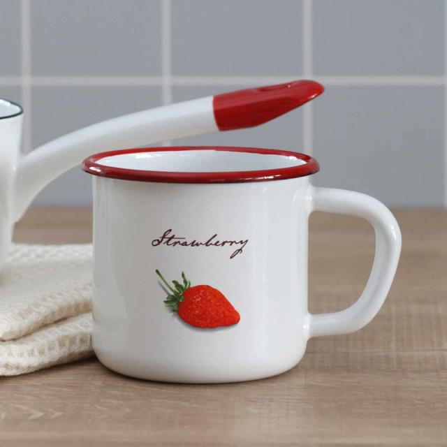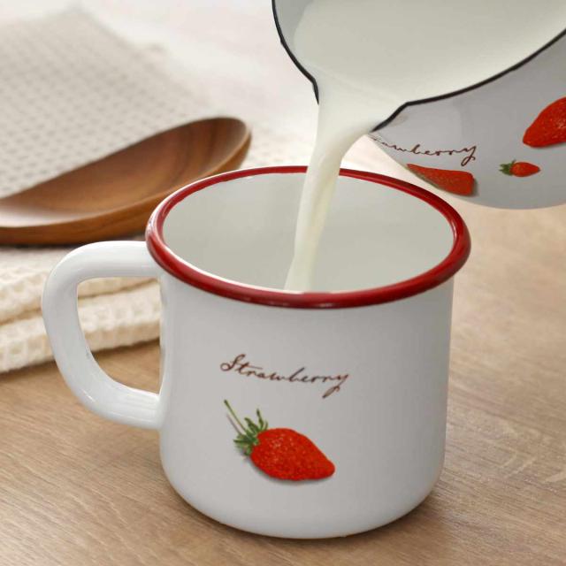 マグカップ 400ml ストロベリーシリーズ 富士ホーロー ホーロー ( 食洗機対応 マグ カップ コップ 琺瑯 いちご イチゴ ストロベリー コーヒー 紅茶 ニオイ付きにくい 丈夫 腐食しにくい かわいい )