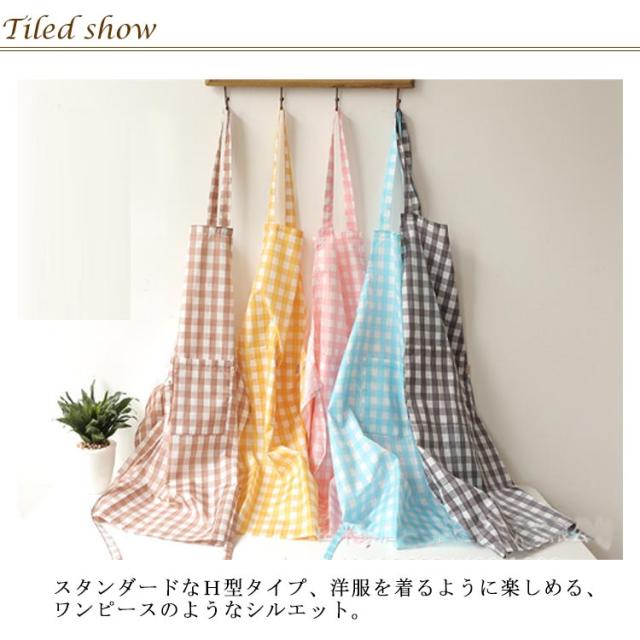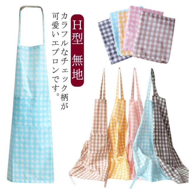 送料無料 エプロン ワンピース ナチュラル レディース チェック 無地 ポケット付き ショート丈 エプロン ドレス H型 ゆったり カフェ 敬老の日 母の日 ギフト プレゼント ガーデニング 新生活 介護士 保育士