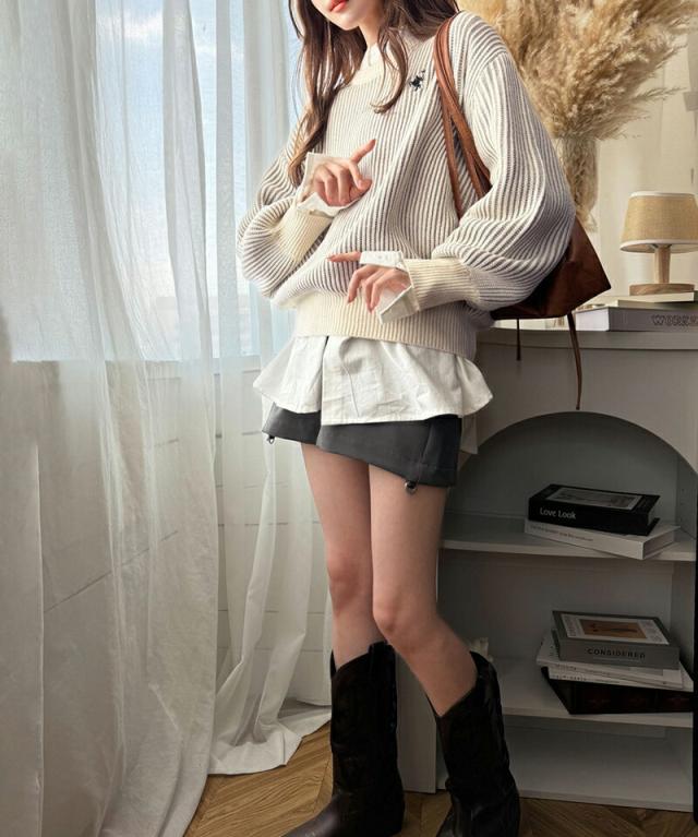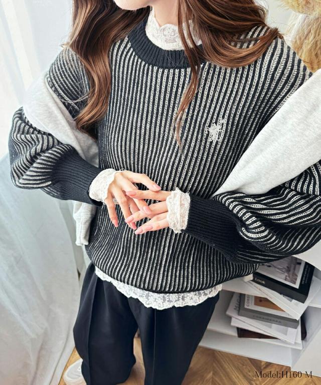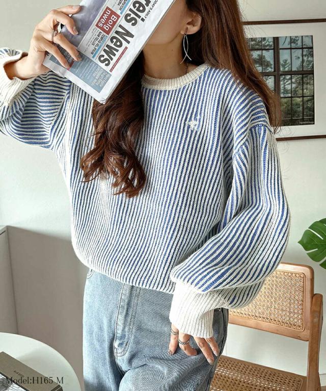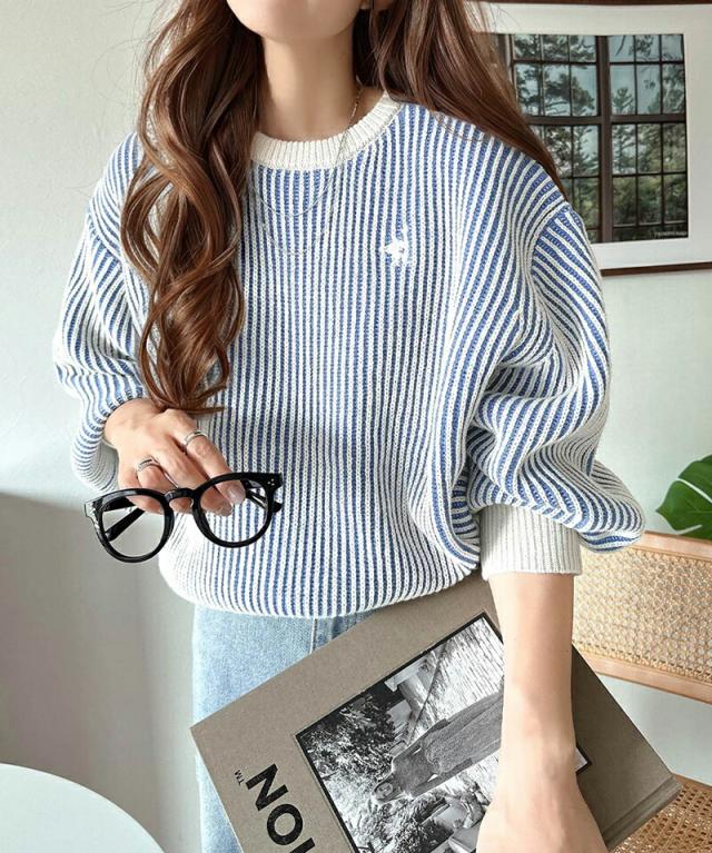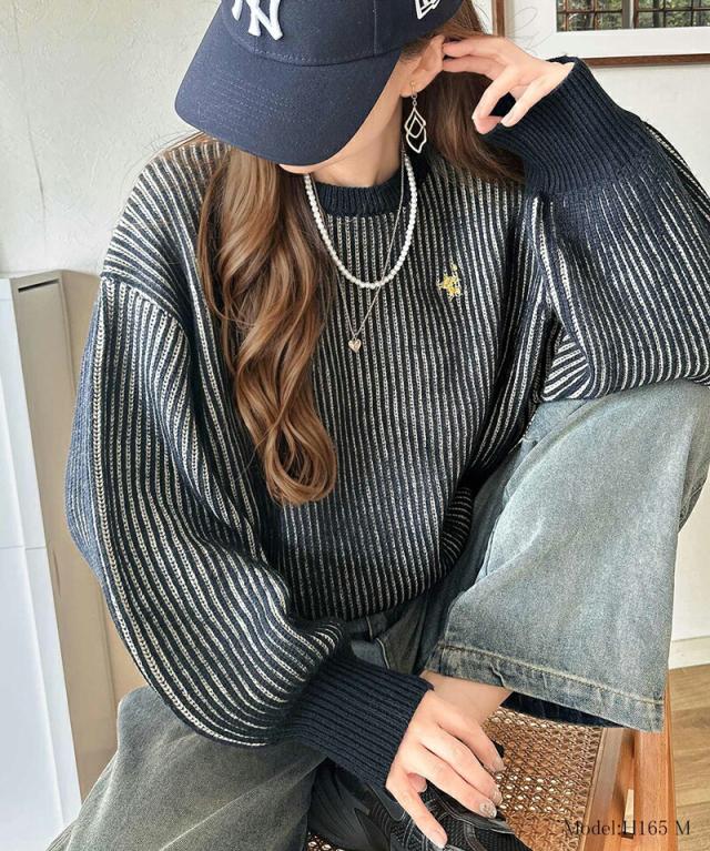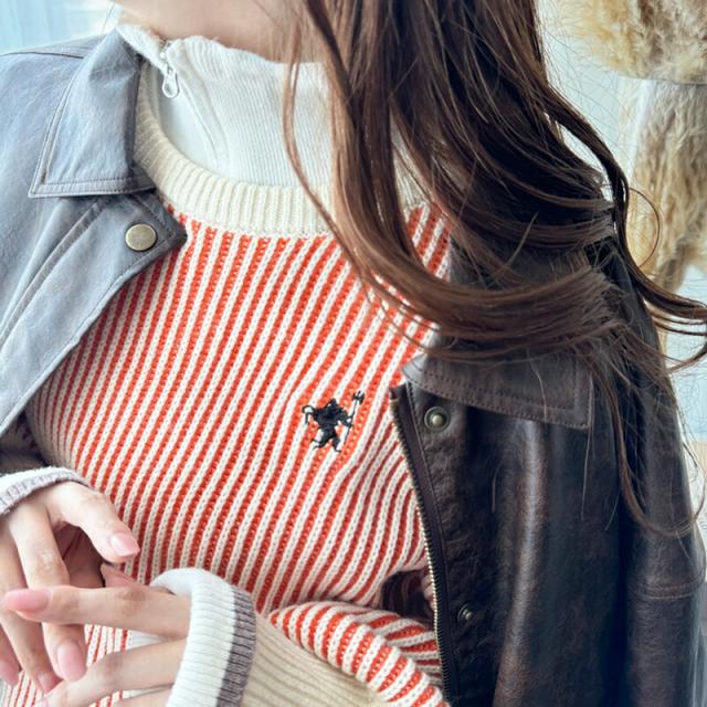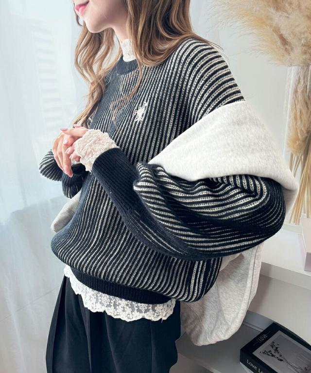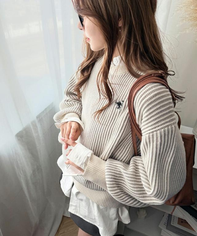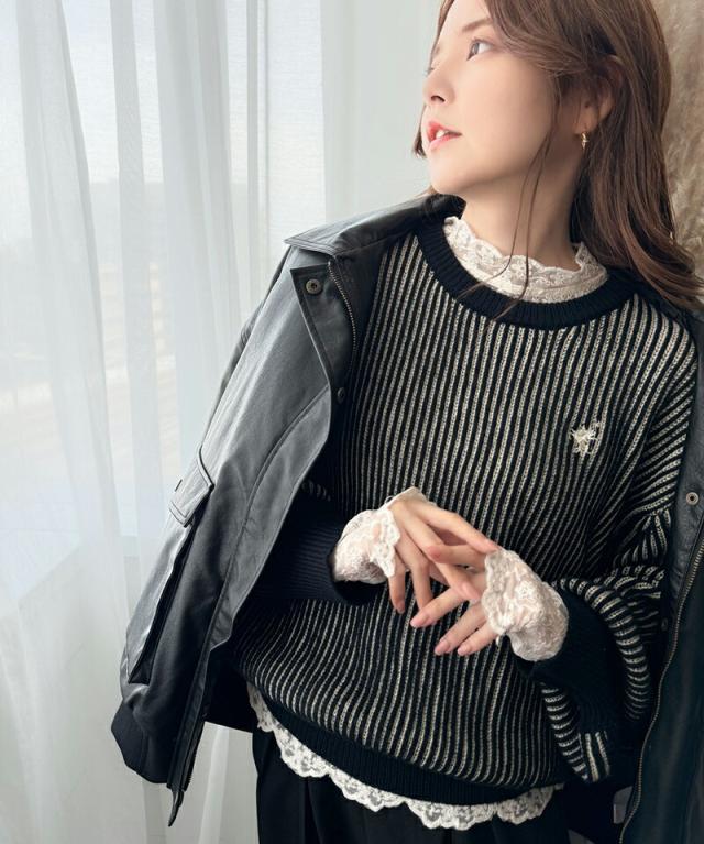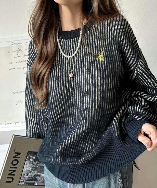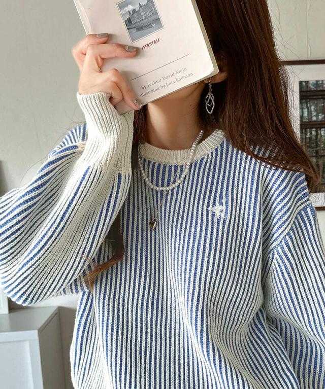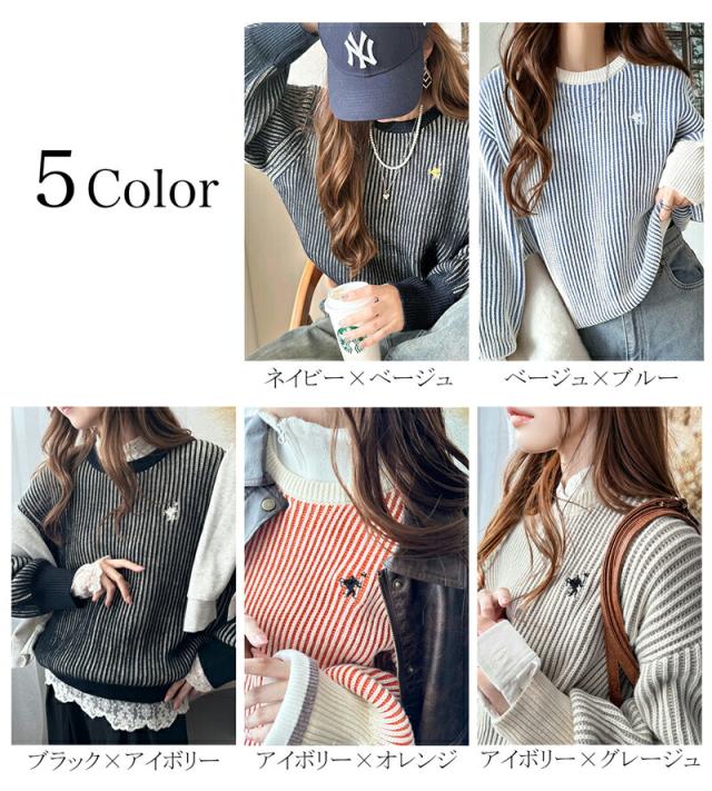 ★カジュアルコーデをアップデート。胸刺繍バイカラーストライプ調ニットプルオーバー★