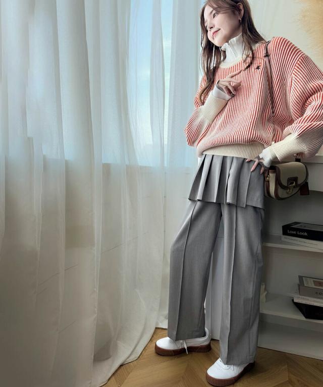 ストライプ見えの配色デザインが大人のカジュアルコーデを格上げしてくれる