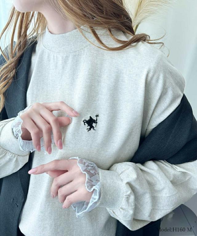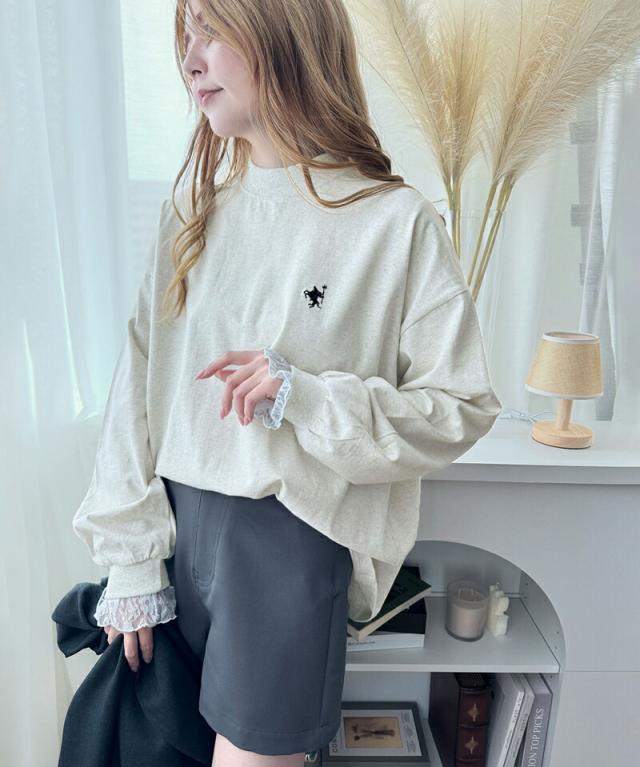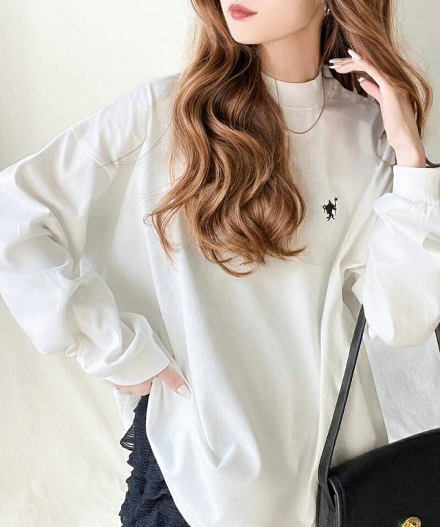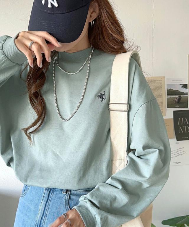 胸刺繍モックネック長袖Tシャツ