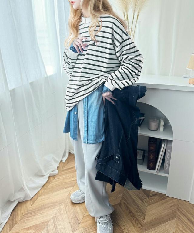 - ボーダー長袖Tシャツ