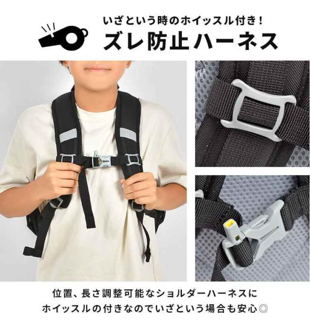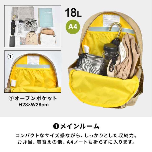 日々のお出かけに最適なキッズ・ジュニア用のバックパック。大きすぎないサイズ感で、幼稚園から小学校まで長く使えます。 ブランド独自の撥水機能OMNI-SHIELD(オムニシールド)を採用し、突然の雨や汚れを防ぎます。フロントとショルダー部分には光を反射させるリフレクター付き。さらにチェストストラップにはホイッスルが付いているのでもしもの場合も安心です。明るい黄色の生地で中が見やすいメインルーム、多数のポケット、内面のネームラベルなど嬉しい機能も充実しています。キュートなラベルワッペンはイラストレーターの河野ルルさんとのコラボレーションです。
