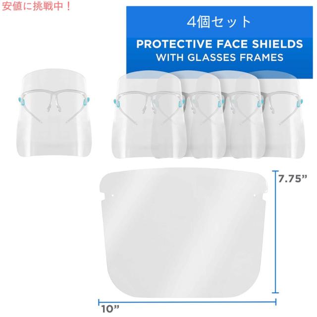 TCPグローバル セーフティフェイスシールド 4個パック TCP Global フェイスカバー Safety Face Shields with Glasses Frames