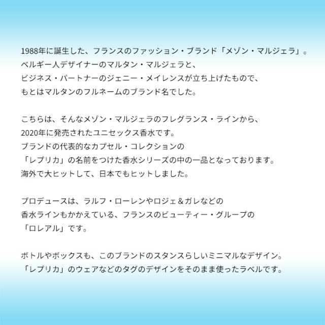 こちらは、そんなメゾン・マルジェラのフレグランス・ラインから、2020年に発売されたユニセックス香水です。