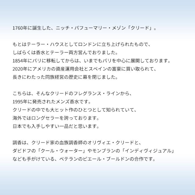 こちらは、そんなクリードのフレグランス・ラインから、1995年に発売されたメンズ香水です。
