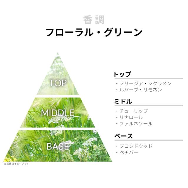 ラ・チューリップの香りは、フローラル・グリーンの香調がベース。清潔感のある一品にしあげられております。