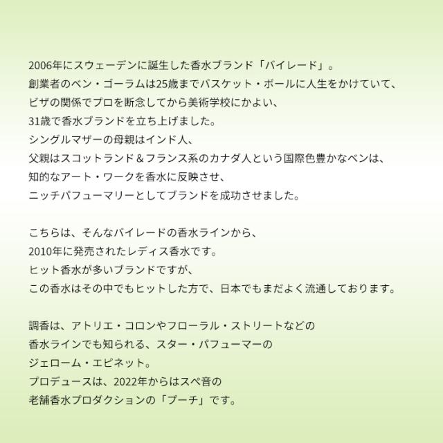 こちらは、そんなバイレードの香水ラインから、2010年に発売されたレディス香水です。