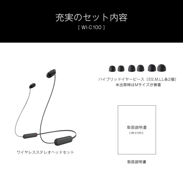 イヤホン Bluetooth ワイヤレス SONY ソニー 防水 IPX4相当 [ ワイヤレスステレオヘッドセット WI-C100 ] iPhone/Android対応 最大25時間再生 ハンズフリー通話 8台までペアリング Google Fast Pair対応 sonyワイヤレスイヤホン