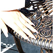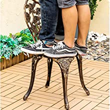 【頑丈な構造】ガーデンテーブルセット鋳物製、頑丈で耐久性に優れています。アルミ鋳物製のため、メンテナンスが不要で、乾いた布や湿った布で拭くことができ、安心です。