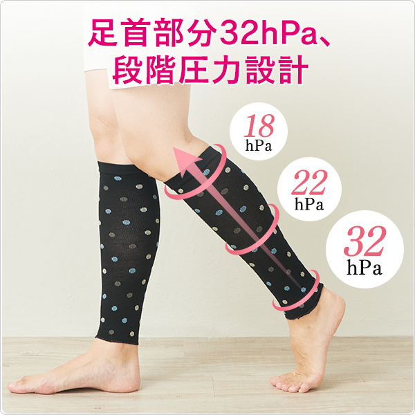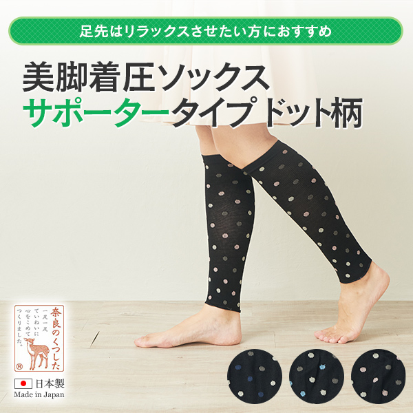 薄手美脚着圧サポーター (ドット柄)水玉 ふくらはぎサポーター 静脈瘤サポーター 綿100 加圧サポーター 妊婦 下肢静脈瘤 むくみ防止 デスクワーク ★822 太陽ニット