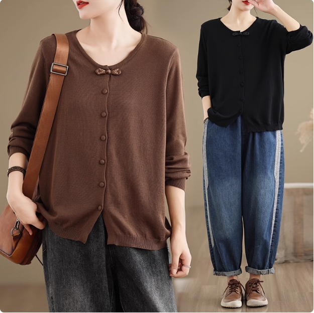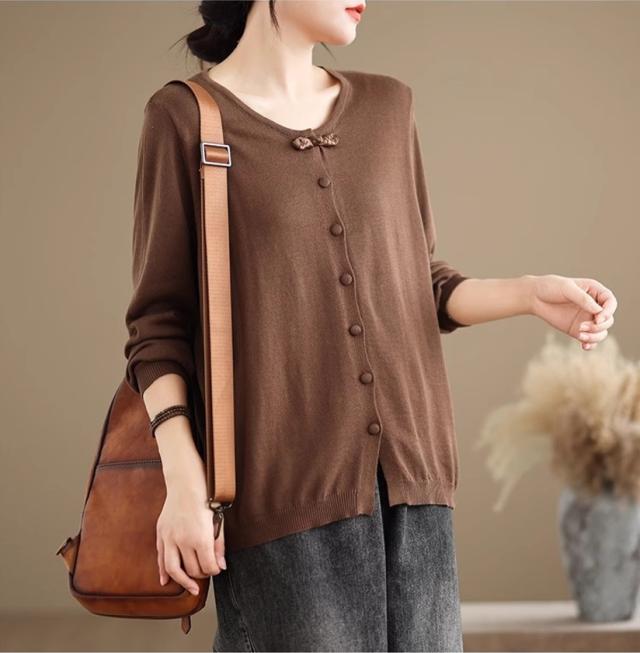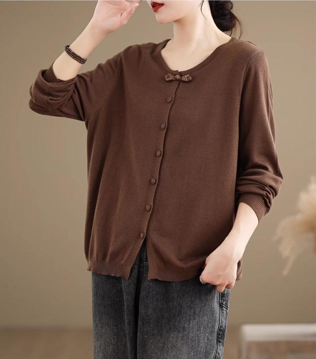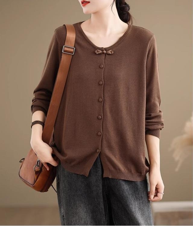 カーディガン レディース 春秋 トップス 羽織り ニット セーター 長袖 綿 ゆったり オーディナリー 幅広いコーディネートを楽しめる 大人オシャレ見え