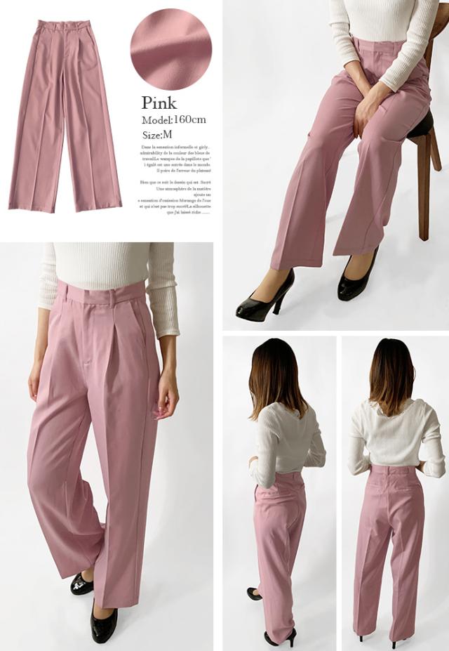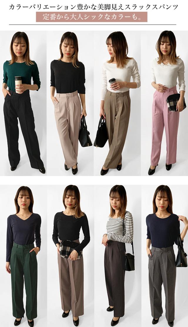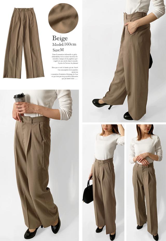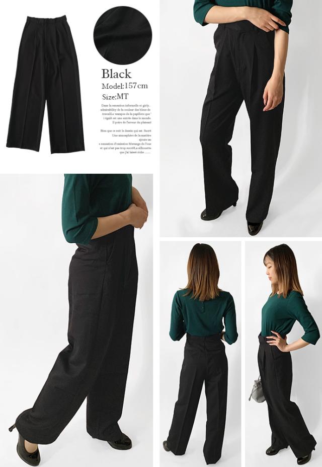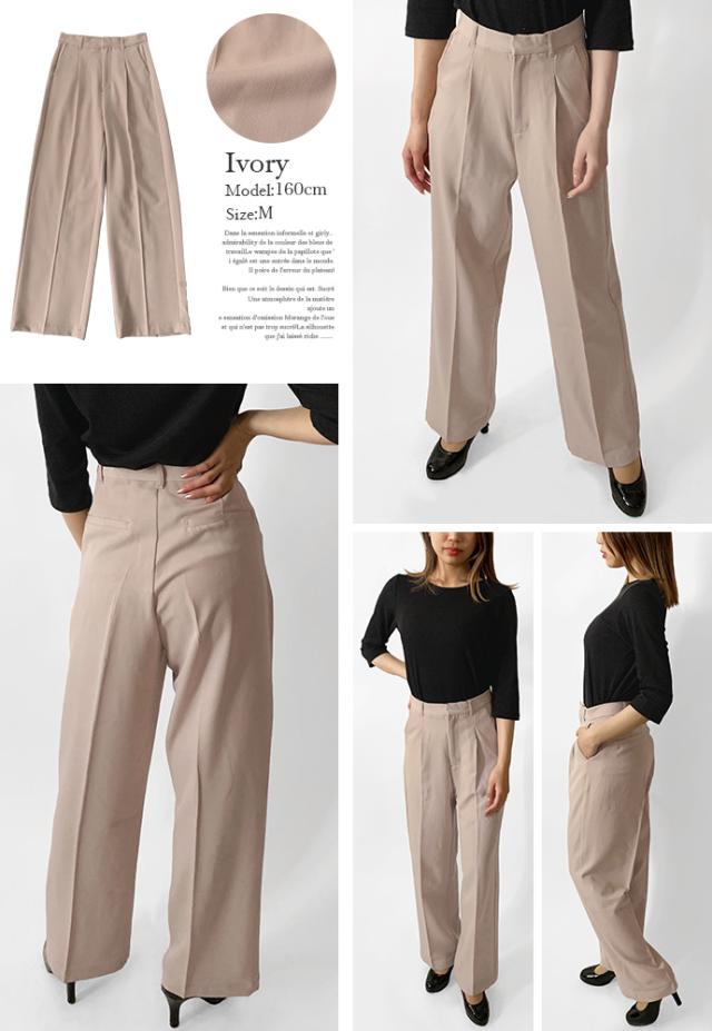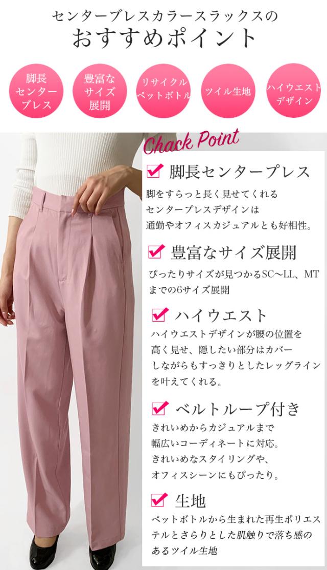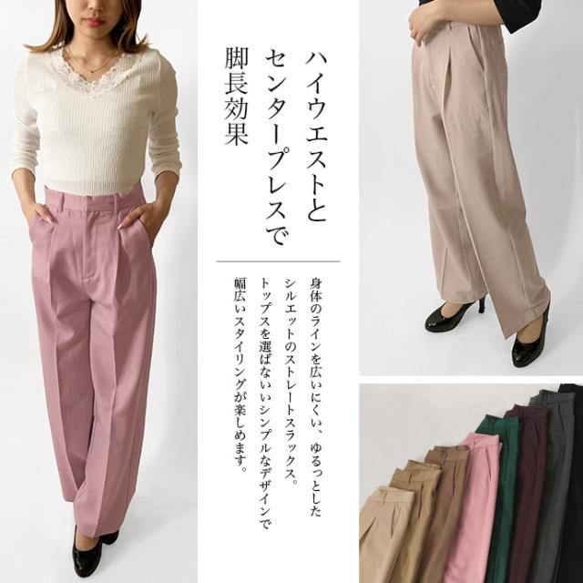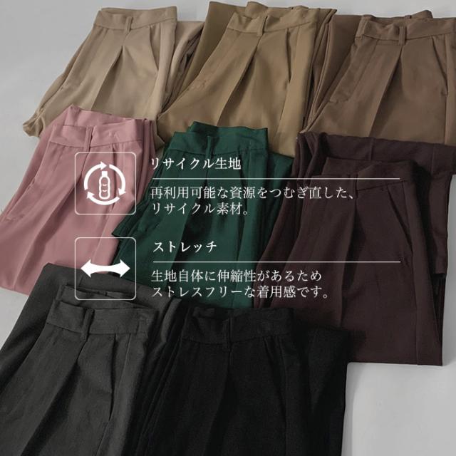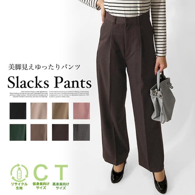ワイドパンツ ストレートパンツ スラックスパンツ ロング丈 ボトムス センタープレス きれいめ シンプル リサイクル繊維 SCサイズ MCサイズ オフィス カジュアル レディース 送料無料 SHOT ショット