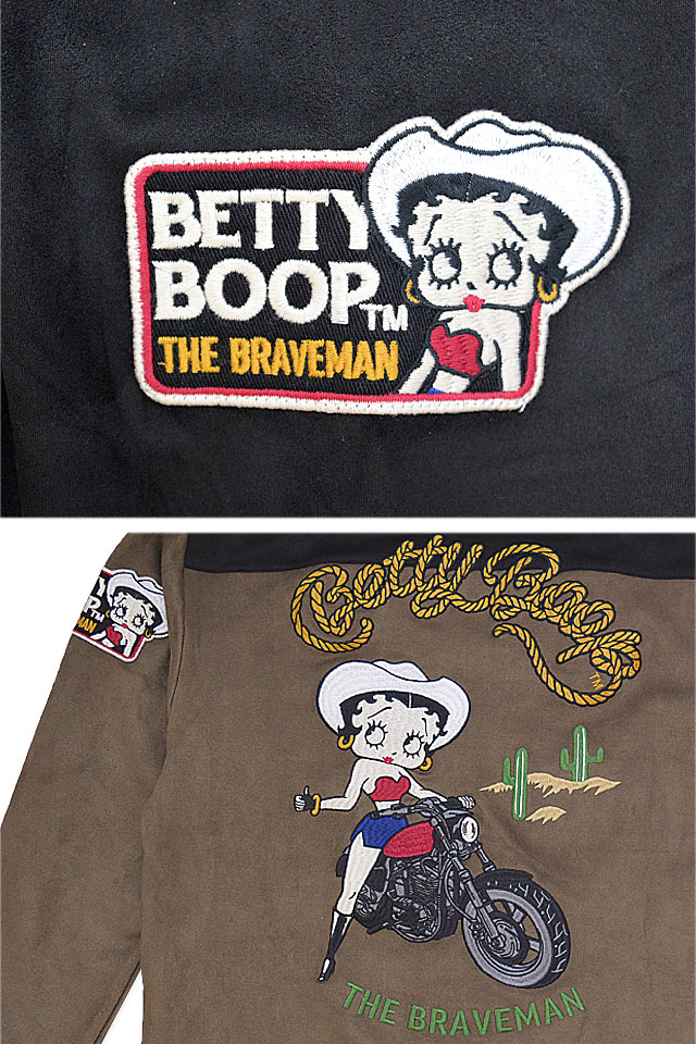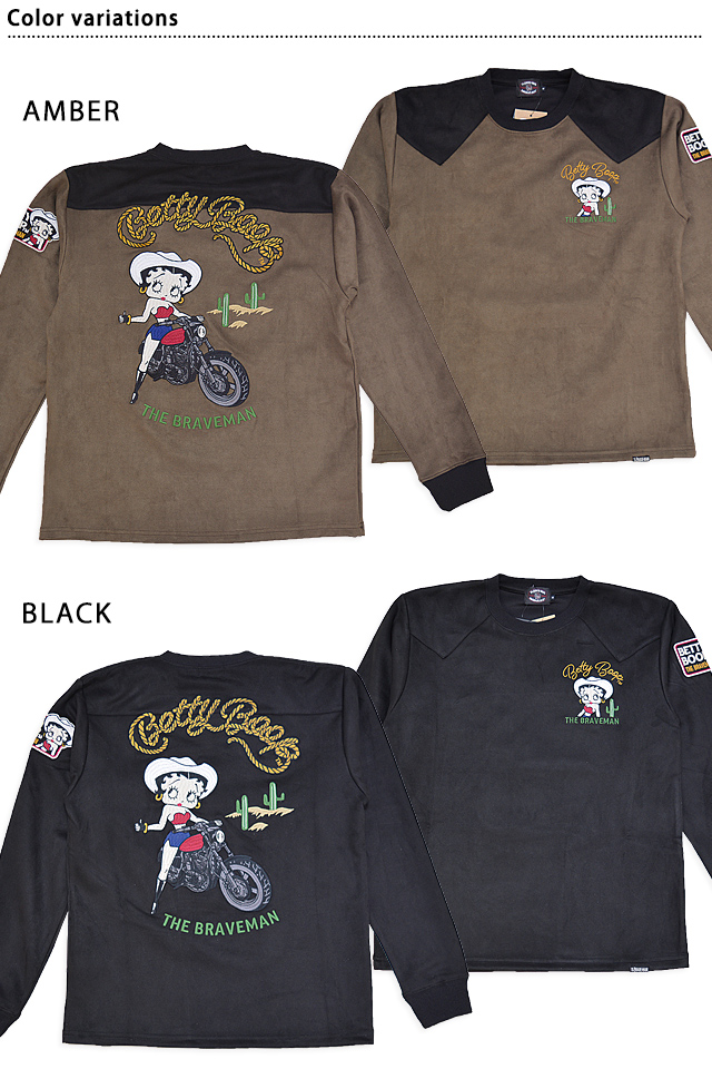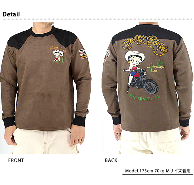 BR×BETTYコラボ 起毛プレーティング長袖Tシャツ The BRAVE-MAN BBB-2448 ブレイブマン ベティーちゃん 刺繍 ロンT