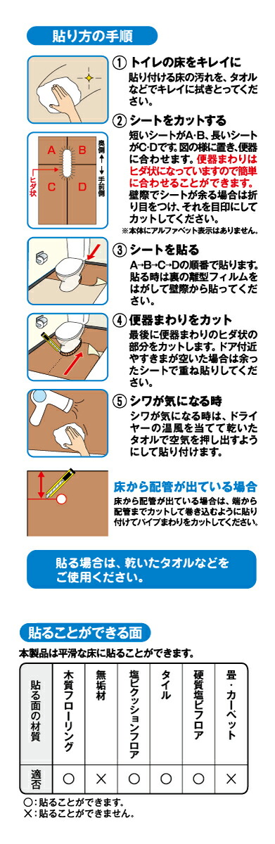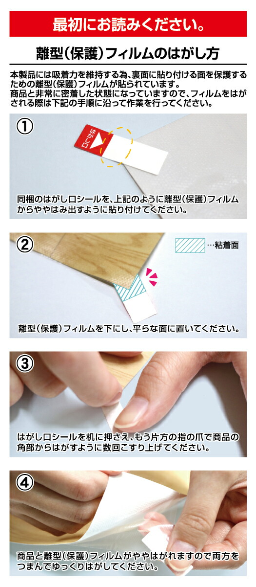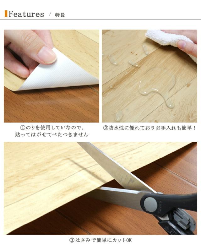 ぴたっと簡単に貼ることができ、はがしてもべたつきません。汚れに強く、防水性に優れておりお手入れも簡単!