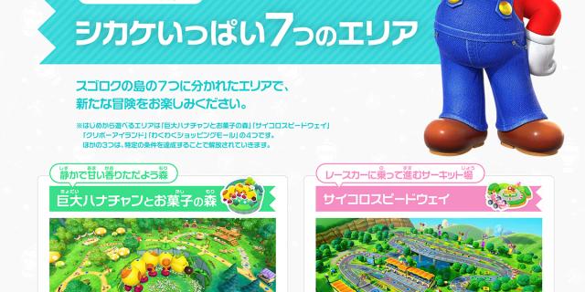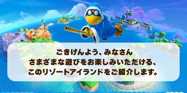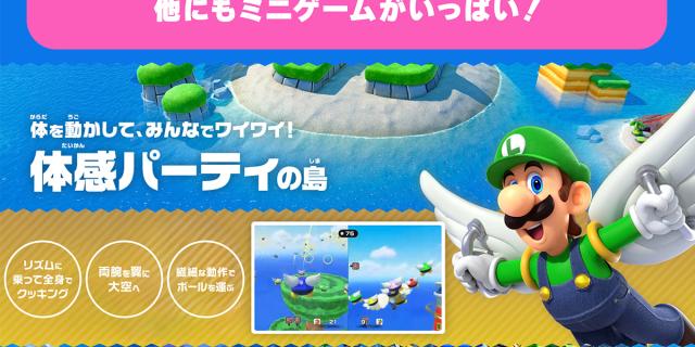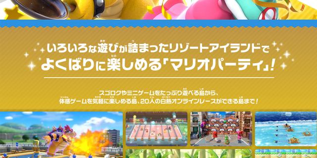 シリーズ史上、最大ボリュームのパーティが開幕。今作の舞台は、綺麗な海が広がる、巨大なリゾートアイランド。マリオたちが島々を巡り、スゴロクにミニゲーム、さまざまな新モードなどを楽しむことができます。