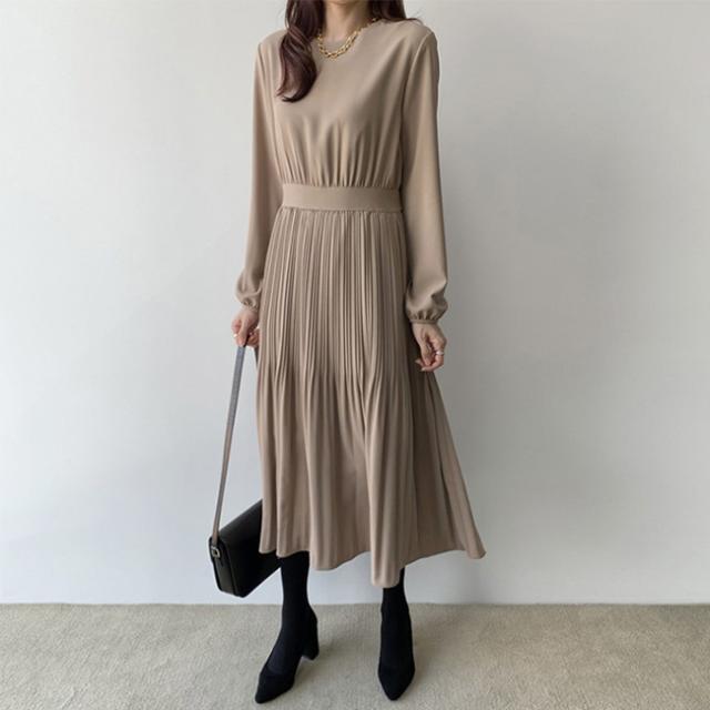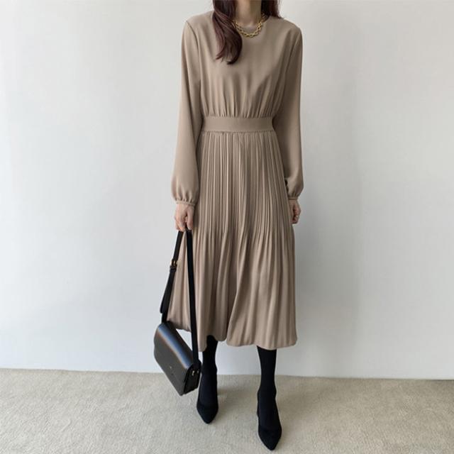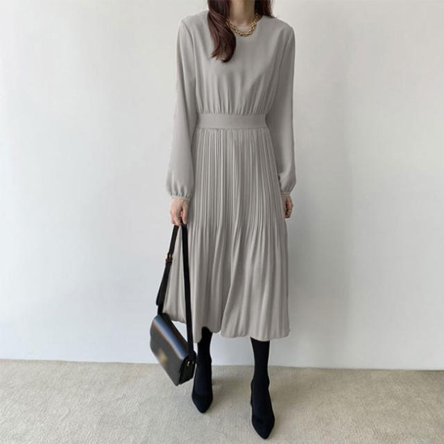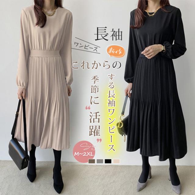 ワンピース レディース 長袖 シフォン フォーマルワンピースプリーツ ドレス ロング丈 ジッパー マキシ 着痩せ 春 夏 秋 冬 20代 30代 40代 オフィス/デート/パーティー/結婚式/二次会