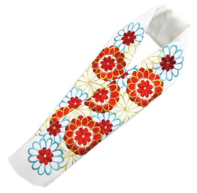 半衿 半襟 刺繍 金糸入り 白色地赤金水色大輪菊花 日本製 振袖 成人式 卒業式 袴 着物 女性用 レディース 振袖用 小紋 洗える着物