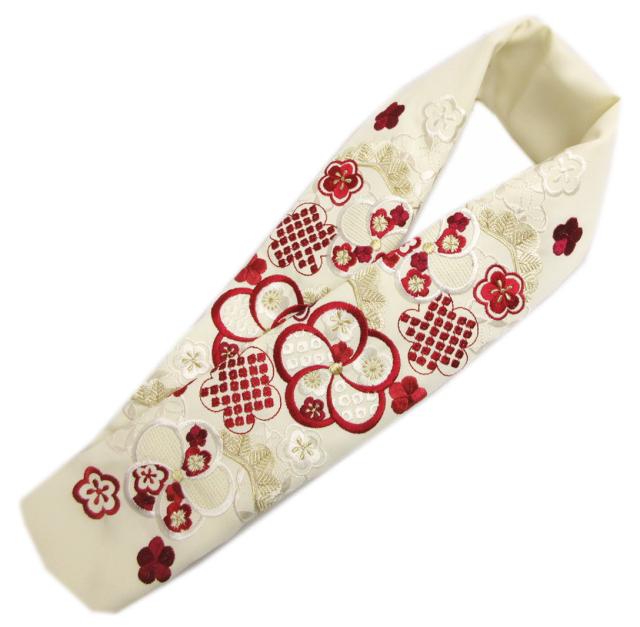 半衿 半襟 刺繍 金糸入り クリーム地濃赤白梅松七宝ひった 日本製 振袖 成人式 卒業式 袴 着物 女性用 レディース 振袖用 小紋 洗える着物 はかま きもの