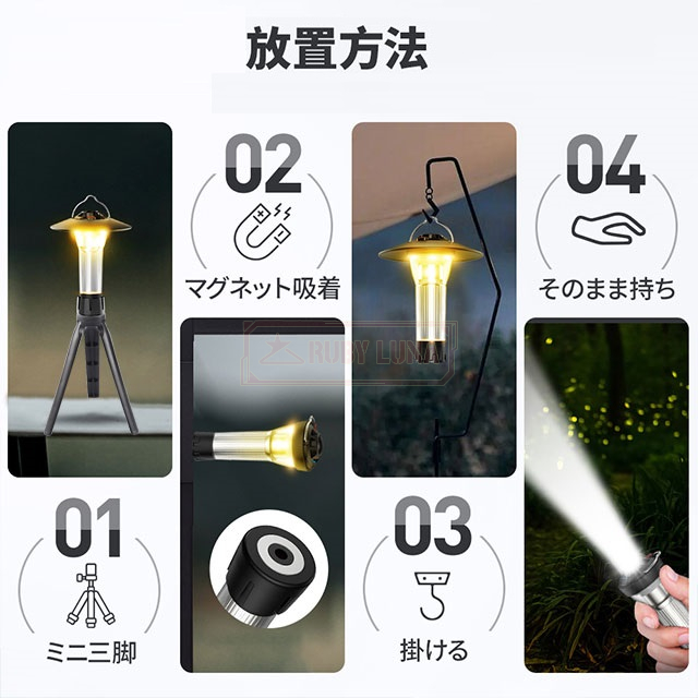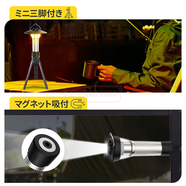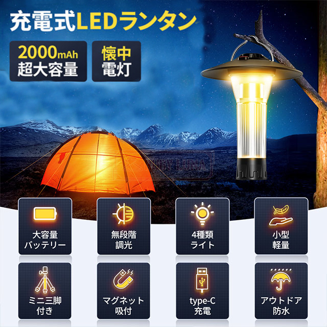 最安挑戦 冬新作 送料無料 新作 ランタン 充電式 ledランタン 懐中電灯 キャンプライト USB Type-C 調節可能 ミニ三脚付 マグネット式 キャンプランタン アウトドア ミニランタン 小型 防災 防水 2000mAh LEDランタン