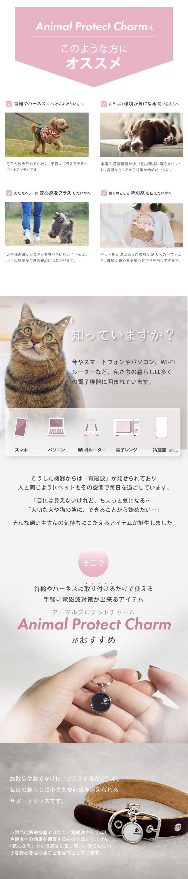 | 商品名 | animal protect charm 選べる2個セットつけるだけ簡単、ペットのための電磁波対策チャーム |