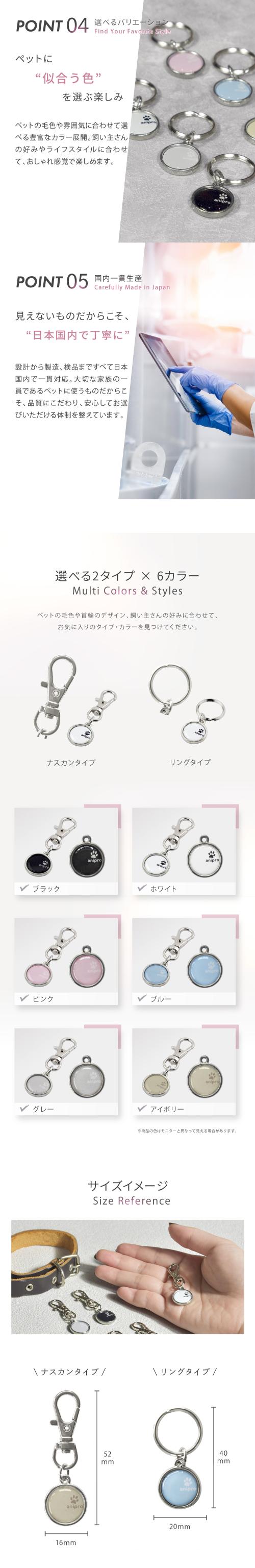 | 本体サイズ[重量] | ナスカンタイプ:W17mm×H54mm×D7mm [5g] リングタイプ:W20mm×H42mm×D7mm [4g] |