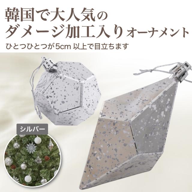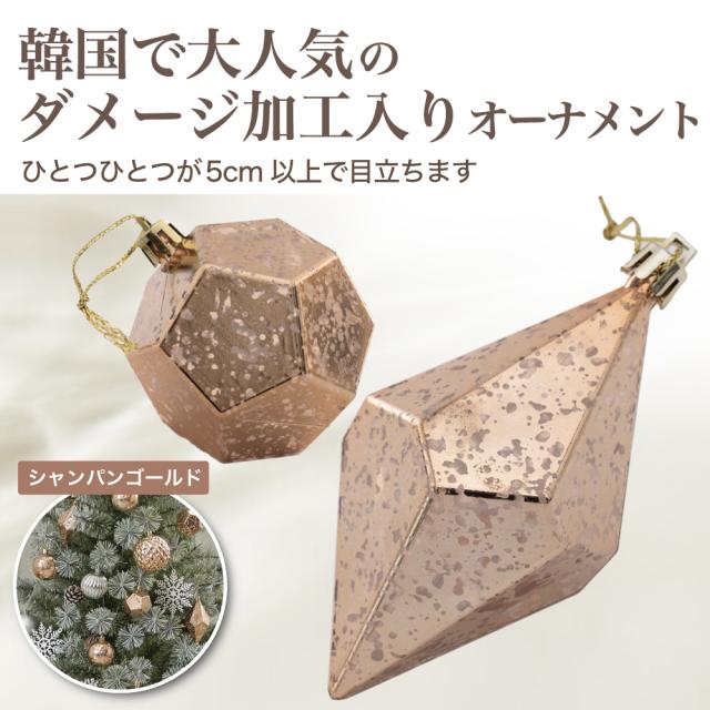 韓国で人気のダメージ加工の入ったオーナメントセットです。1つ5cm以上の存在感のあるオーナメントでクリスマスツリーを素敵に飾り付けましょう。