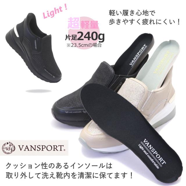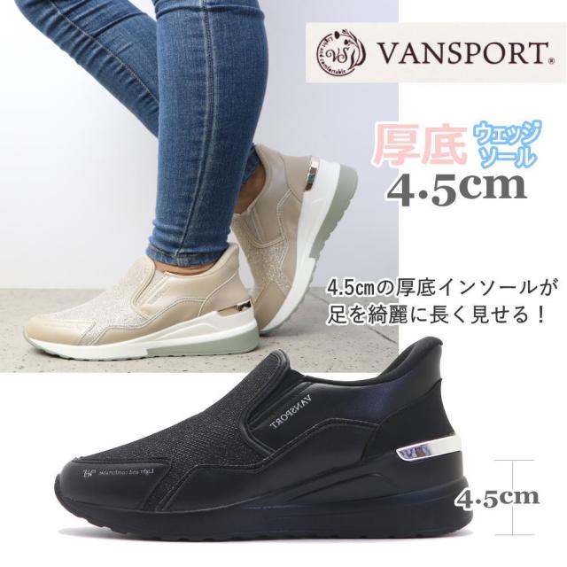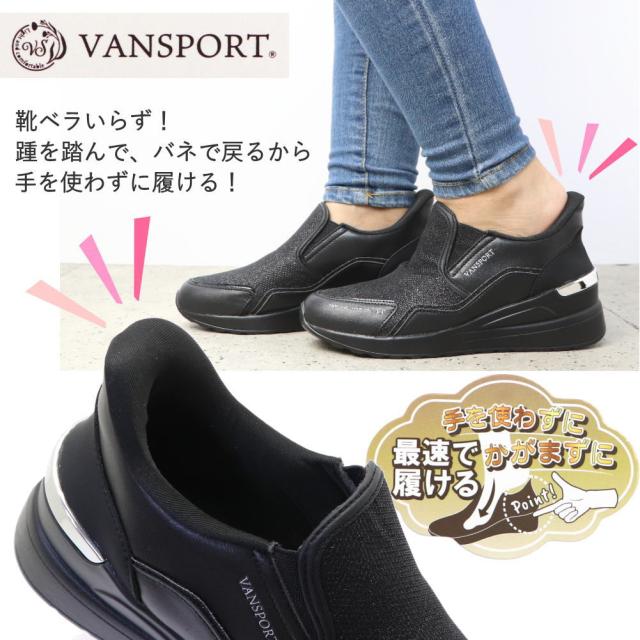 即納 手を使わず履ける 厚底 レディース スニーカー ウェッジソール カジュアル 軽量 スリッポン VANSPORT No.404