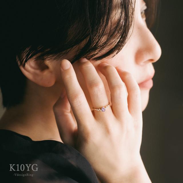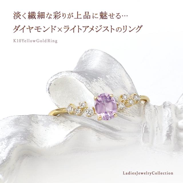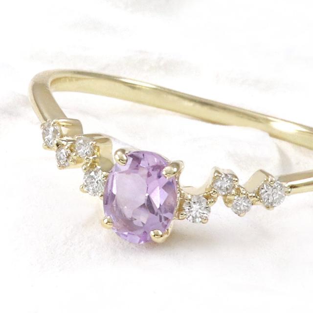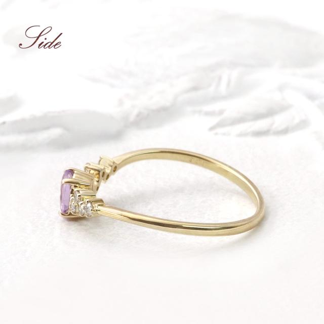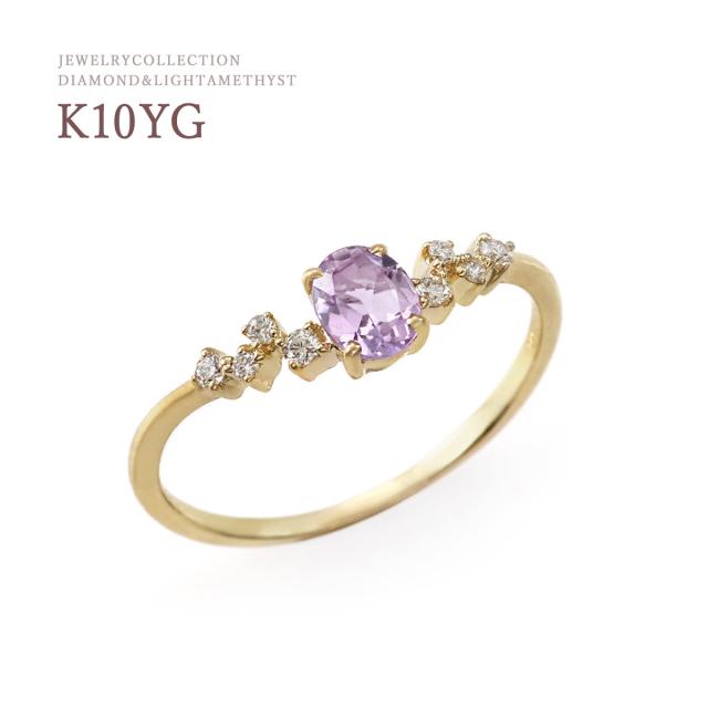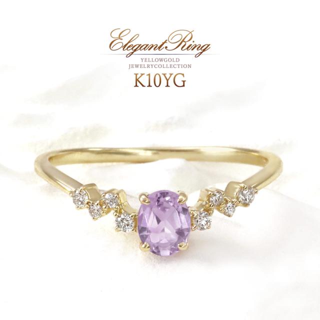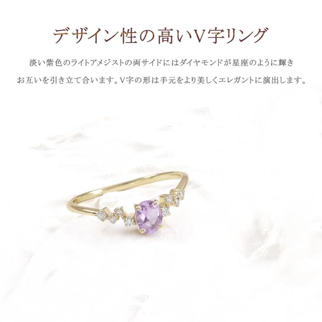 指輪 レディース イエローゴールド 10金 ダイヤモンド ライトアメジスト リング 9号 11号 13号 プレゼント 記念日 ギフト 10K K10 アクセサリー V字 おしゃれ 可愛い Vの字 V字リング V字の指輪 天然石 宝石 彼女 女性 4月 2月 誕生石 本物 紫 パープル ホワイトデー お返し