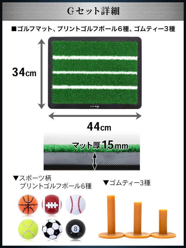 ゴルフマット、スポーツ柄ゴルフボール6種、ゴムティー3種