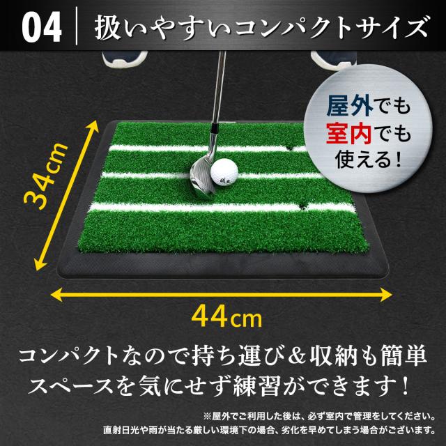 【手軽に使えるコンパクトサイズ】34×44cmとコンパクトサイズなので、持ち運びも収納も簡単。屋内・室内問わずご利用いただけるので、スペースを気にせず手軽に練習することが出来ます。