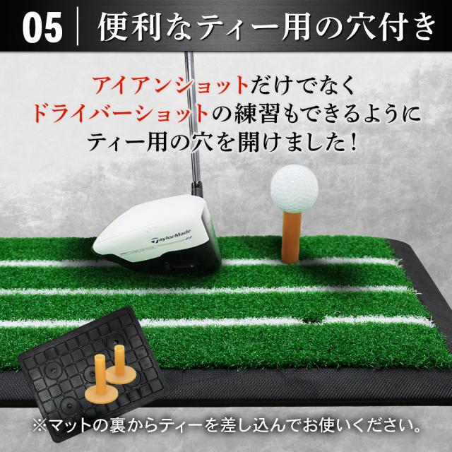 【スイングの軌道が確認しやすい白線入り】初心者やスイングのブレが気になる方にオススメの見やすい白線入り。ティー用の穴が開いているのでドライバーショットの練習にもご利用いただけます。