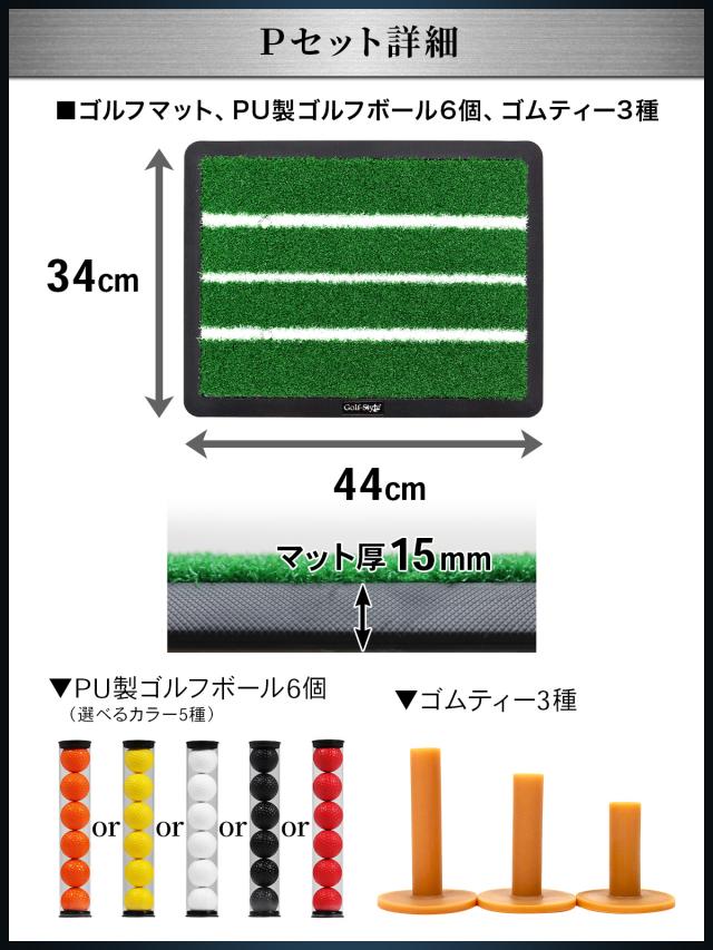 ゴルフマット、PU製ゴルフボール6個、ゴムティー3種