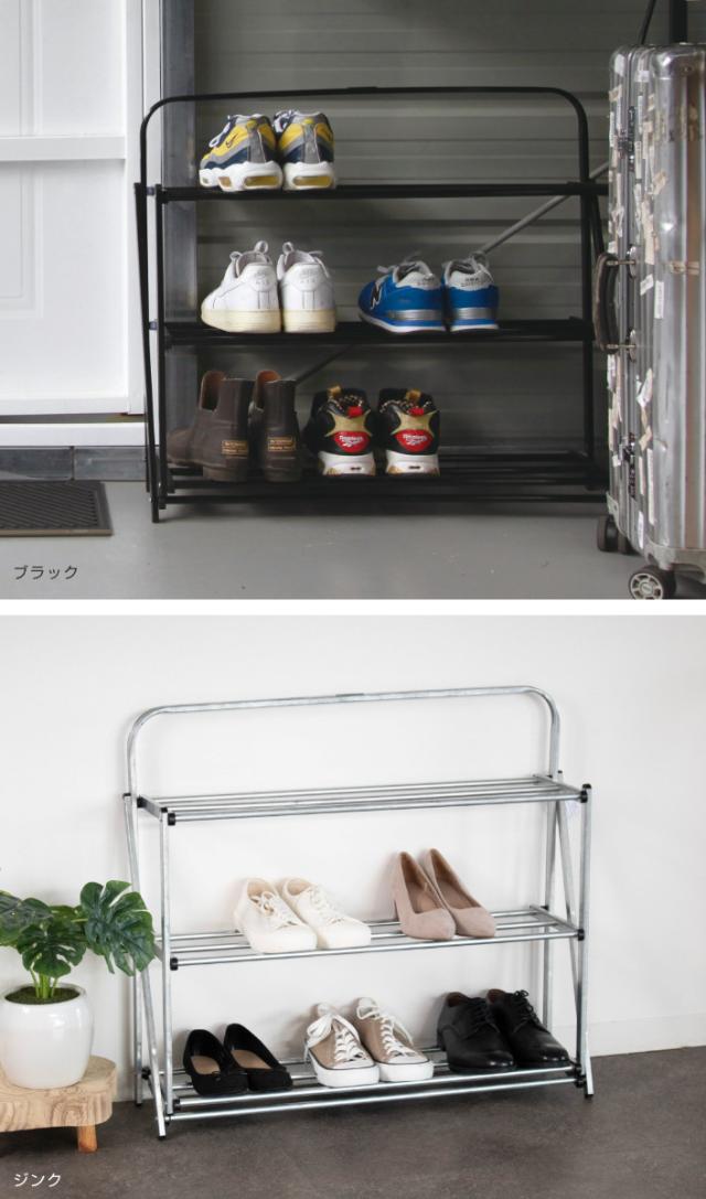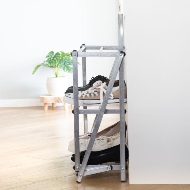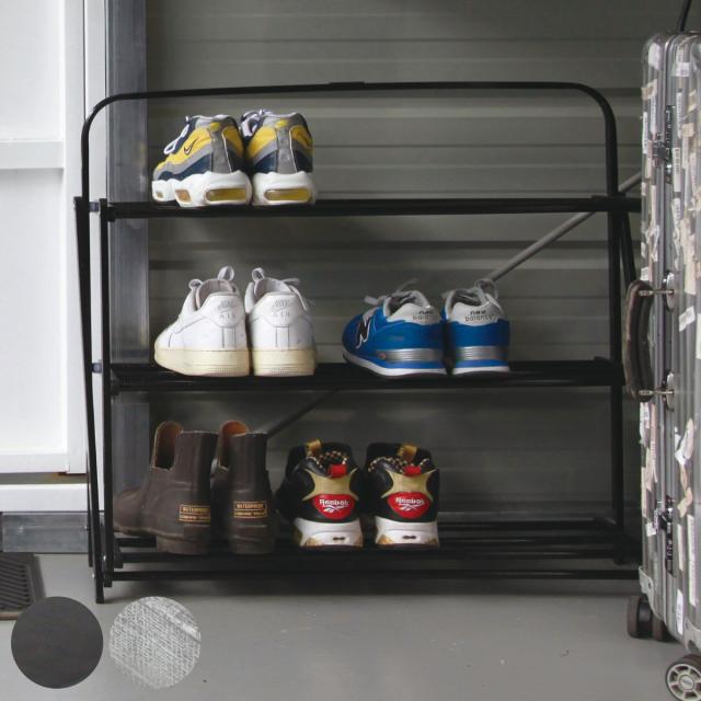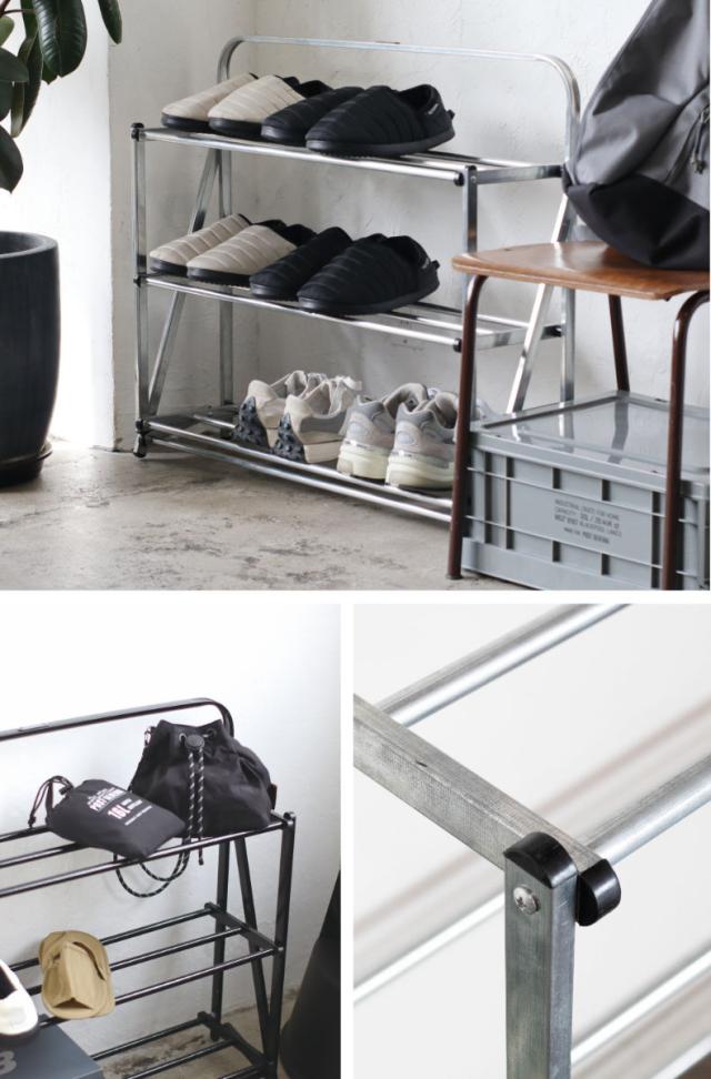 無骨で洗練された折り畳み式のシューズラック