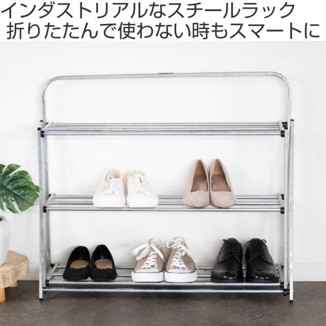 シューズラック ポストジェネラル フォルダブルシューズラック ( 折りたたみ コンパクト 玄関 収納 靴 ラック スリッパラック 下駄箱 ハンマートン 靴箱 靴入れ 収納ラック 省スペース ブラック 黒 シルバー スリム たためる )