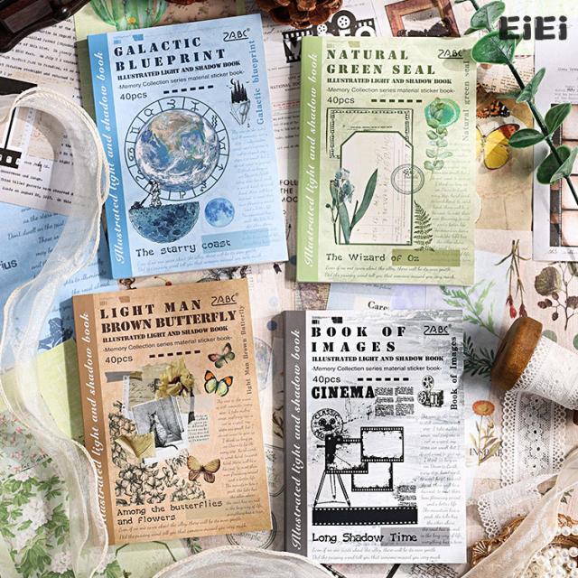 シールブック 40頁/冊 型抜き 製本 ステッカーブック 背景シール コラージュ素材 おしゃれ 大容量 英語 ネガフィルム 額縁 英字 文字素材 宇宙 惑星 蝶 葉っぱ 植物柄 枠 フレームワーク ダイカット マスキングテープ素材 シールシート デコレーション 手帳 DIY
