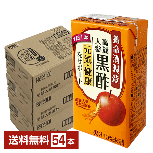 養命酒製造 高麗人参黒酢 125ml 紙パック 18本×3ケース(54本) 送料無料