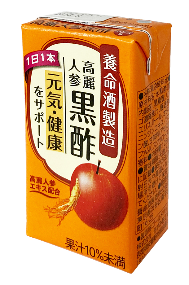 | 原材料 | 米黒酢(国内製造)、黒糖蜜、リンゴ濃縮果汁、醸造酢、エリスリトール、オタネニンジンエキス/クエン酸、甘味料(アセスルファムK、スクラロース)、香料 |