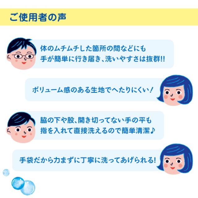 | 《使用上の注意》 ●キズや発疹など、お肌に異常のある場合は、使用しないでください。●必ず石けんや洗浄料をつけ、よく泡立ててご使用ください。●こすりすぎないようにしてください。●本品の使用により、かぶれやかゆみなどの異常を感じた場合は、すみやかに使用を中止し医師の診断を受けてください。●タンブラー等、乾燥機による乾燥はおやめください。●火のそばに置かないでください。●鍋つかみなどには、絶対に使用しないでください。やけどなど、思わぬ事故の原因となります。●石けんや洗浄料が手や足につくと、すべりやすくなるため、十分ご注意ください。●からだ洗い以外の用途には、使用しないでください。 |
