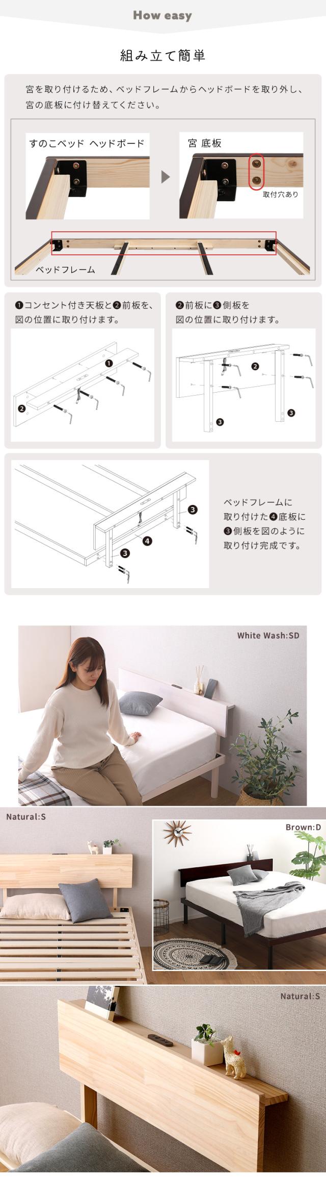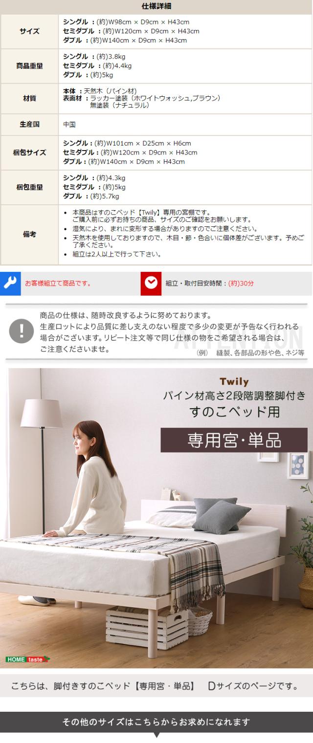 TWILY専用 宮棚 単品 ダブルベッド用 【送料無料】 パイン材 脚付き すのこベッド用 オプション棚 木製 後付け 棚