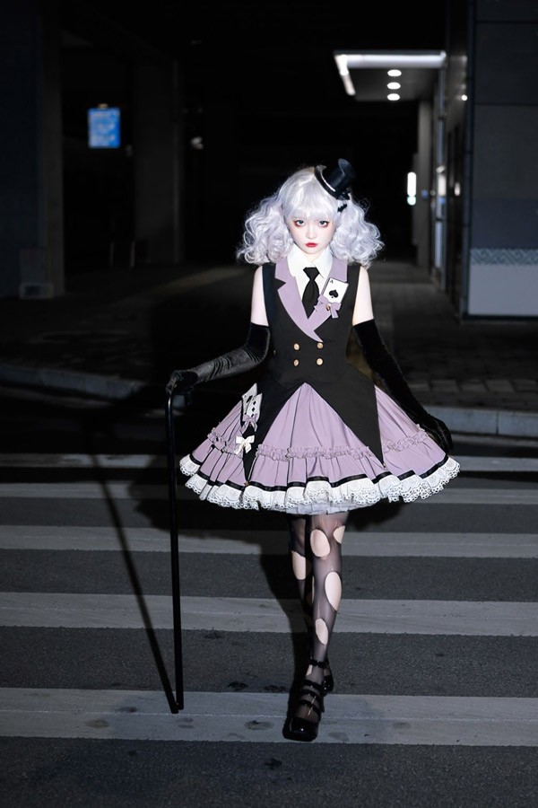 ワンピース ロリータ ハロウィン マジシャンガール 魔術師 怪盗 ショート丈 ミニ レディース ゴスロリ ハイウエスト Aライン