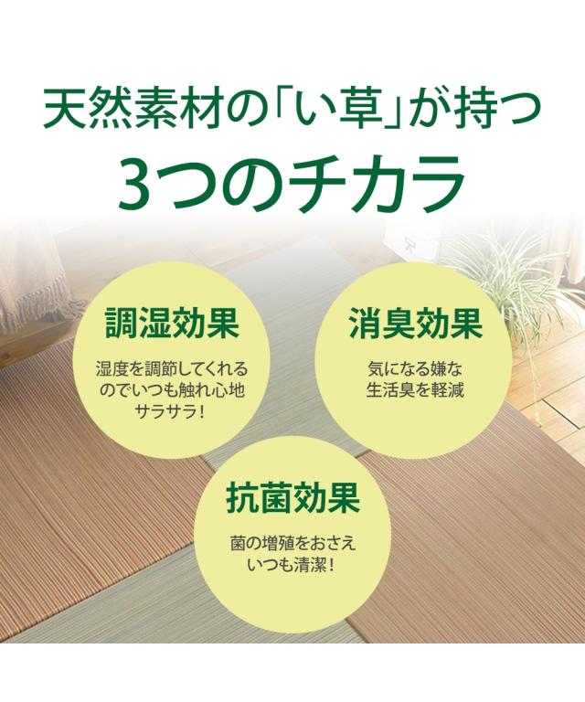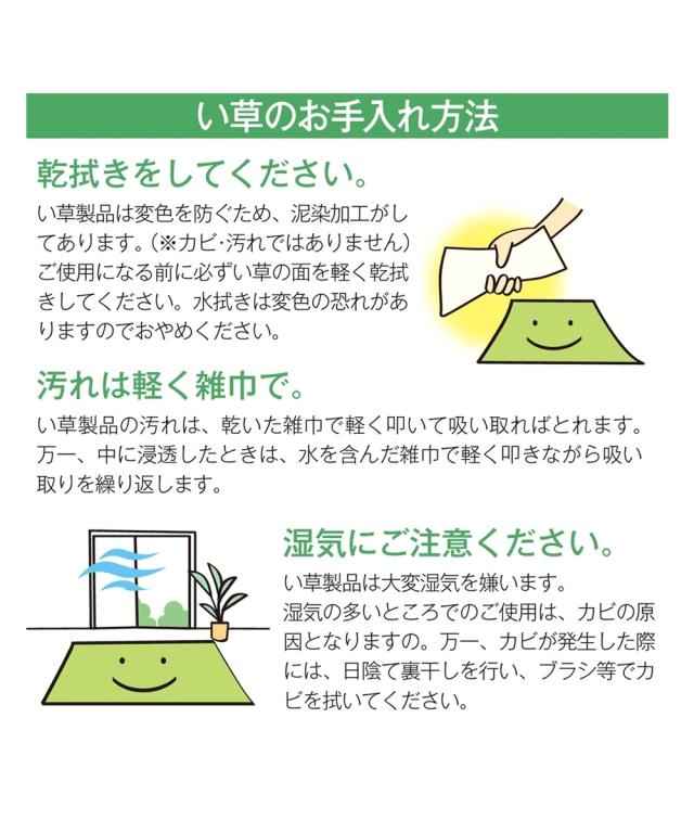 品質:表面=い草100%、中材=EPE・硬質発砲、裏面=不織布 ●滑り止めシート付(裏面5箇所)※ご使用になられる前に、乾いた布で表面を軽く拭いてください。強く拭いたり、濡れた布で拭くと変色する恐れがありますのでご注意ください。 原産国:中国製