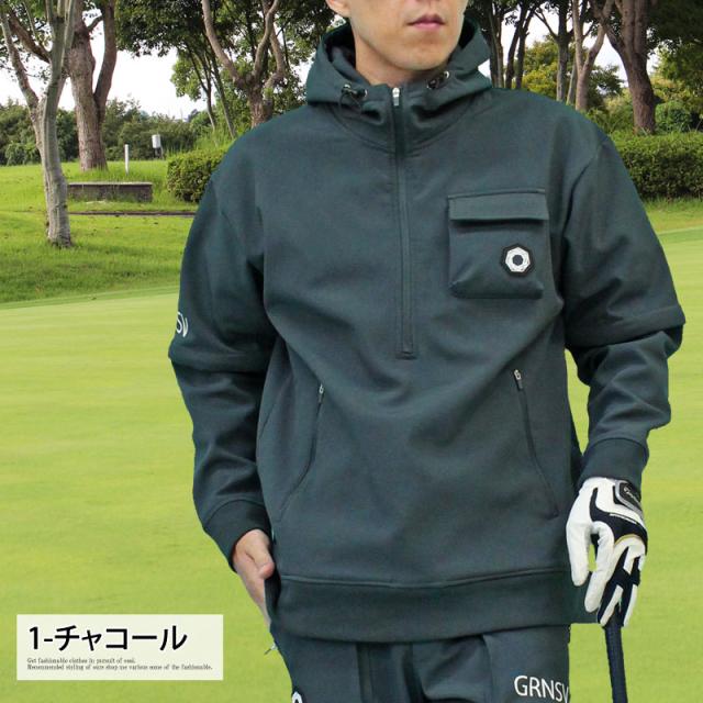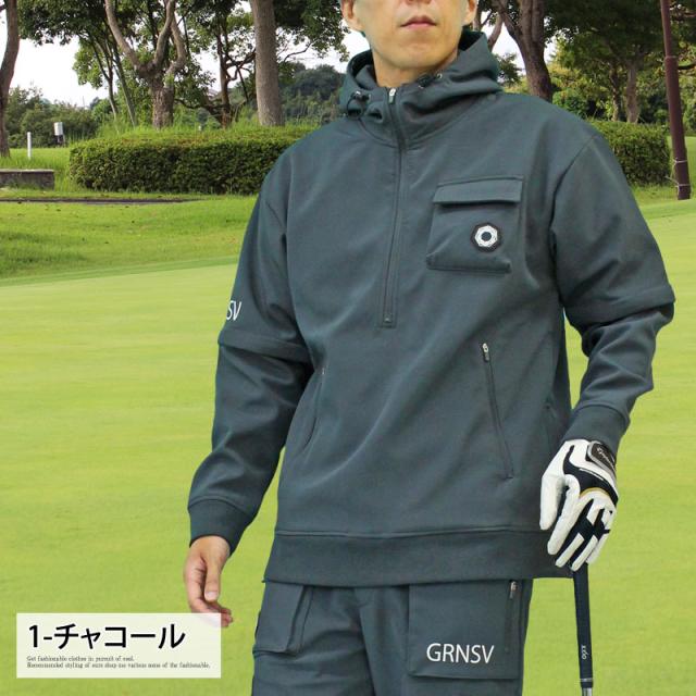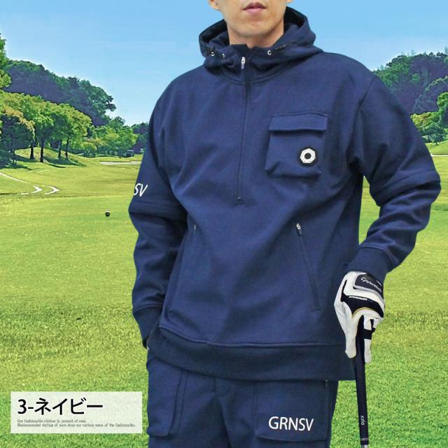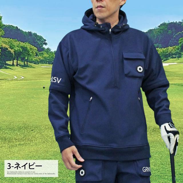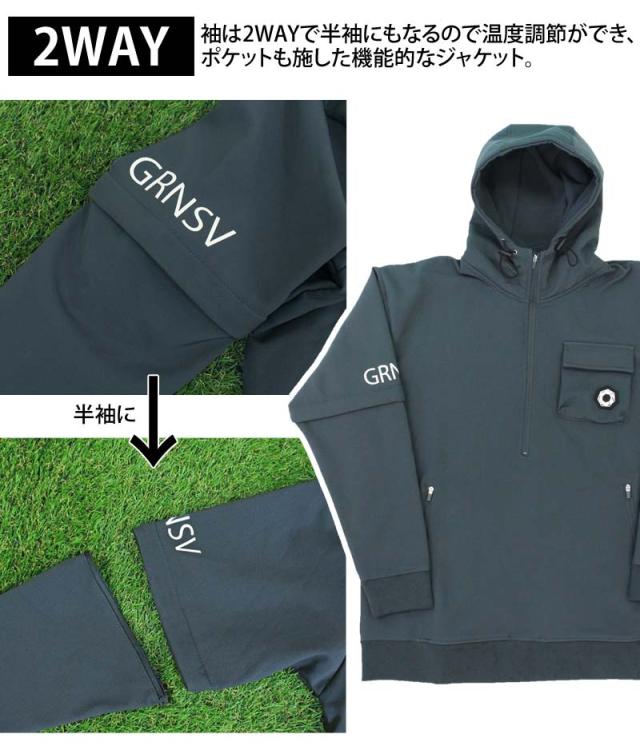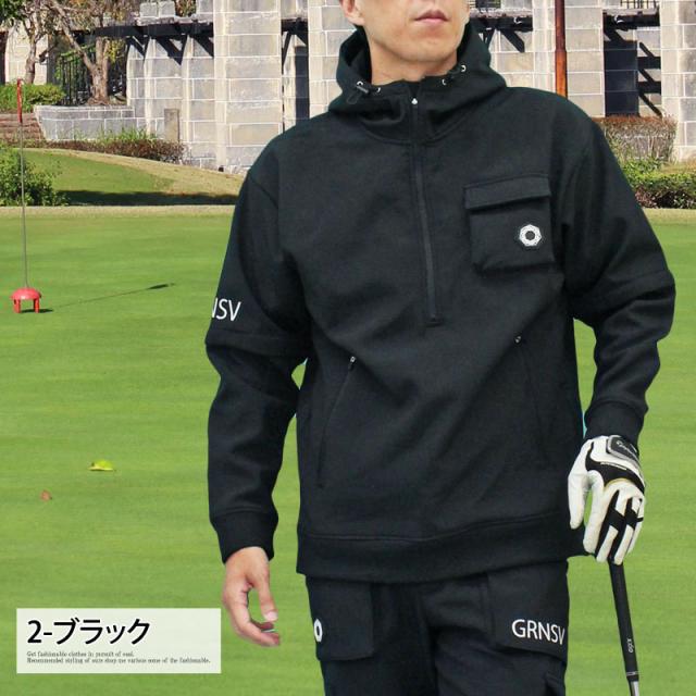 N~XXL ゴルフジャケット メンズ ゴルフウェア スニードジャック フードパーカー ハーフジップ 裏フリース GIORNO SEVEN ジョルノセブン 袖2WAY アウター ブルゾン トップス プルオーバー 秋冬 おしゃれ ブランド 送料無料