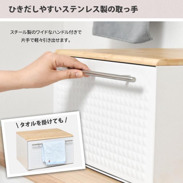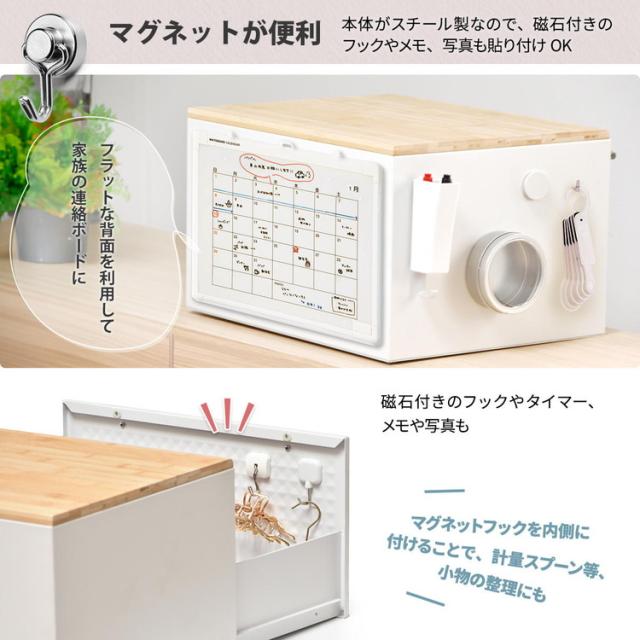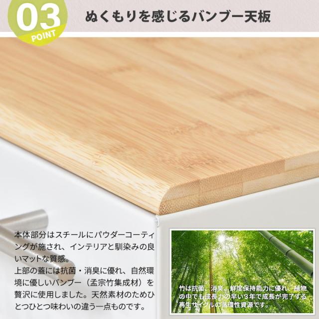 素 材:【本体・扉】スチール(エポキシ粉体塗装) 【天板】バンブー集成材(ラッカー塗装) 【取っ手】ステンレススチール