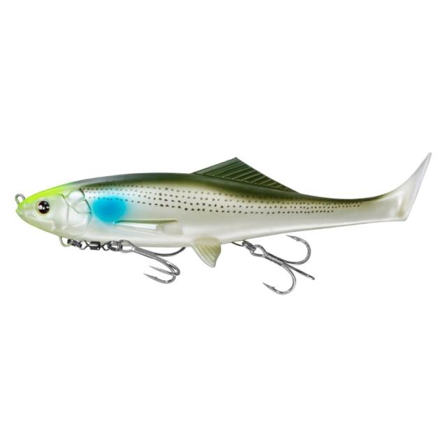 セイルアッパーはソフトエラストマー素材を採用しており、ハードルアーを見切ってしまうスレたシーバスでも反応させることができるフローティングスイムベイト。ソフト素材と逆付けテールはデッドスローリトリーブでもテールを振り子のようにしっかりと左右に振り、高い集魚効果を誇る。