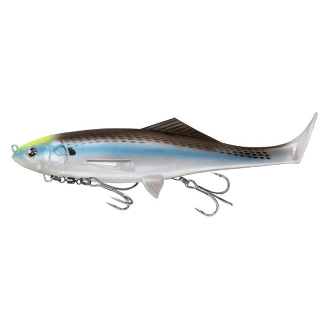 セイルアッパーはソフトエラストマー素材を採用しており、ハードルアーを見切ってしまうスレたシーバスでも反応させることができるフローティングスイムベイト。ソフト素材と逆付けテールはデッドスローリトリーブでもテールを振り子のようにしっかりと左右に振り、高い集魚効果を誇る。