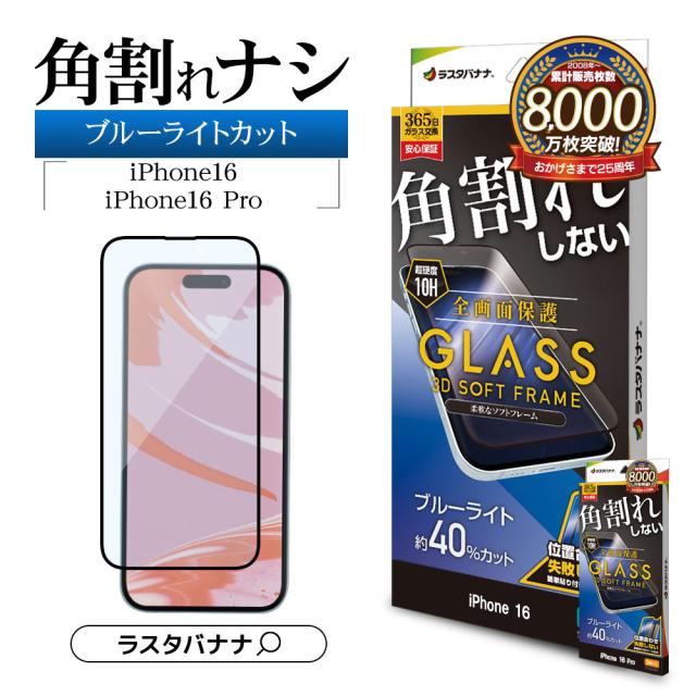 【送料無料】iPhone16 16 Pro iPhone15 ガラスフィルム 全面保護 ブルーライトカット 高光沢 角割れしない 0.25mm ソフトフレーム 簡単貼り付け アイフォン ラスタバナナ SE4292IP461 SE4377IP461P