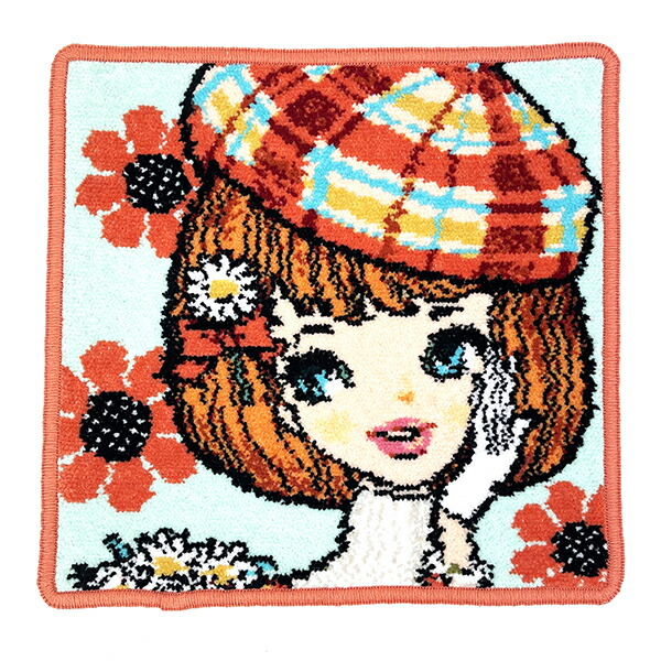 内藤ルネ ベレー帽の少女 シェニール織 タオル ハンカチ RUNE 日本製